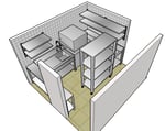 Extra kar op wielen voorzien voor extra afwas op te plaatsen en schappen boven de afwaslijn voor extra stockage.